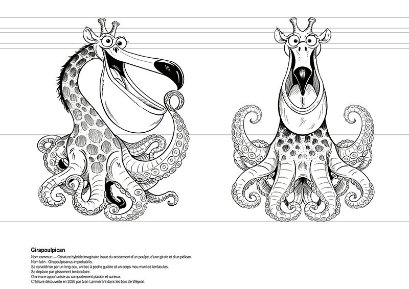 Nom commun — Créature hybride imaginaire issue du croisement d’un poulpe, d’une girafe et d’un pélican.